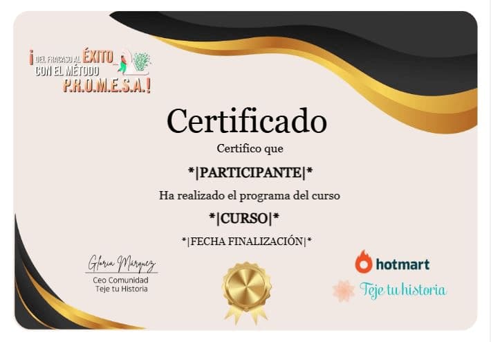 Un Certificado oficial: Avalado por Hotmart, que valida tu transformación personal y profesional.