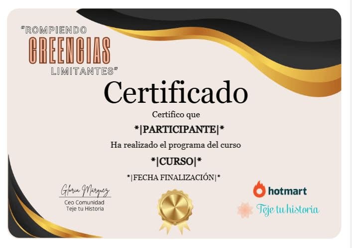 Un Certificado oficial: Avalado por Hotmart, que valida tu transformación personal y profesional.